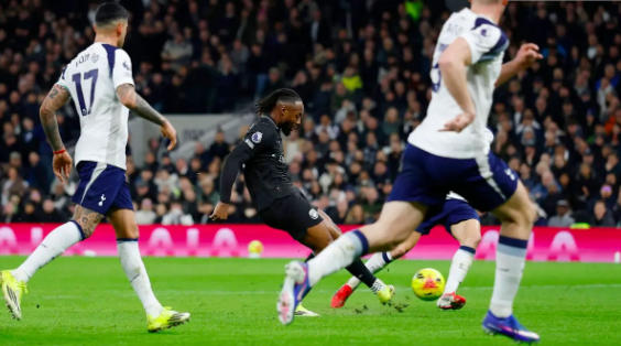 僅僅3分鐘后,場上出現了爭議一幕。索蘭克在禁區內起腳射門,疑似踢到了格伊。不過,裁判并沒有做出任何表示,而是判定進球有效,熱刺扳回一城。這一進球,讓熱刺球員看到了扳平比分的希望,也讓主場球迷們重新燃起了熱情。