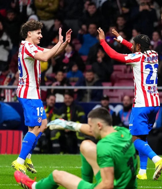 上半場,馬競的攻勢如潮,他們的反擊速度快得驚人。小蜘蛛在反擊中送出一記精妙的助攻,盧克曼輕松破門,比分變成了3 - 0。還沒等巴薩緩過神來,阿爾瓦雷斯又抓住機會,通過反擊再次得分,比分直接定格在4 - 0。這比分差距也太懸殊了,馬競就像一群兇猛的野獸,把巴薩徹底打垮了。